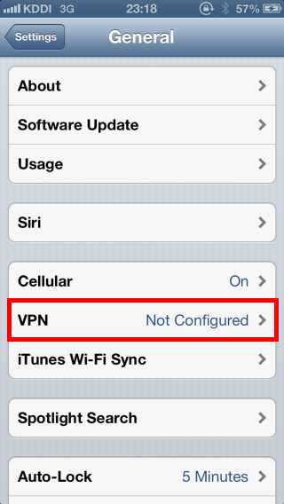 当 VPN 建立时, iOS 在屏幕最上面一栏显示 "VPN" 指标。